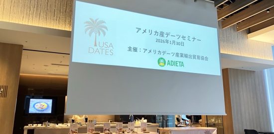 アメリカデーツ産業輸出貿易協会は1月30日、TOKYO TORCH 常盤橋タワーのHall and Kitchenにて「アメリカ産デーツセミナー」を開催した。アメリカ産デーツの特徴や協会の活動を紹介するプレゼンテーションの後、アメリカ産デ…