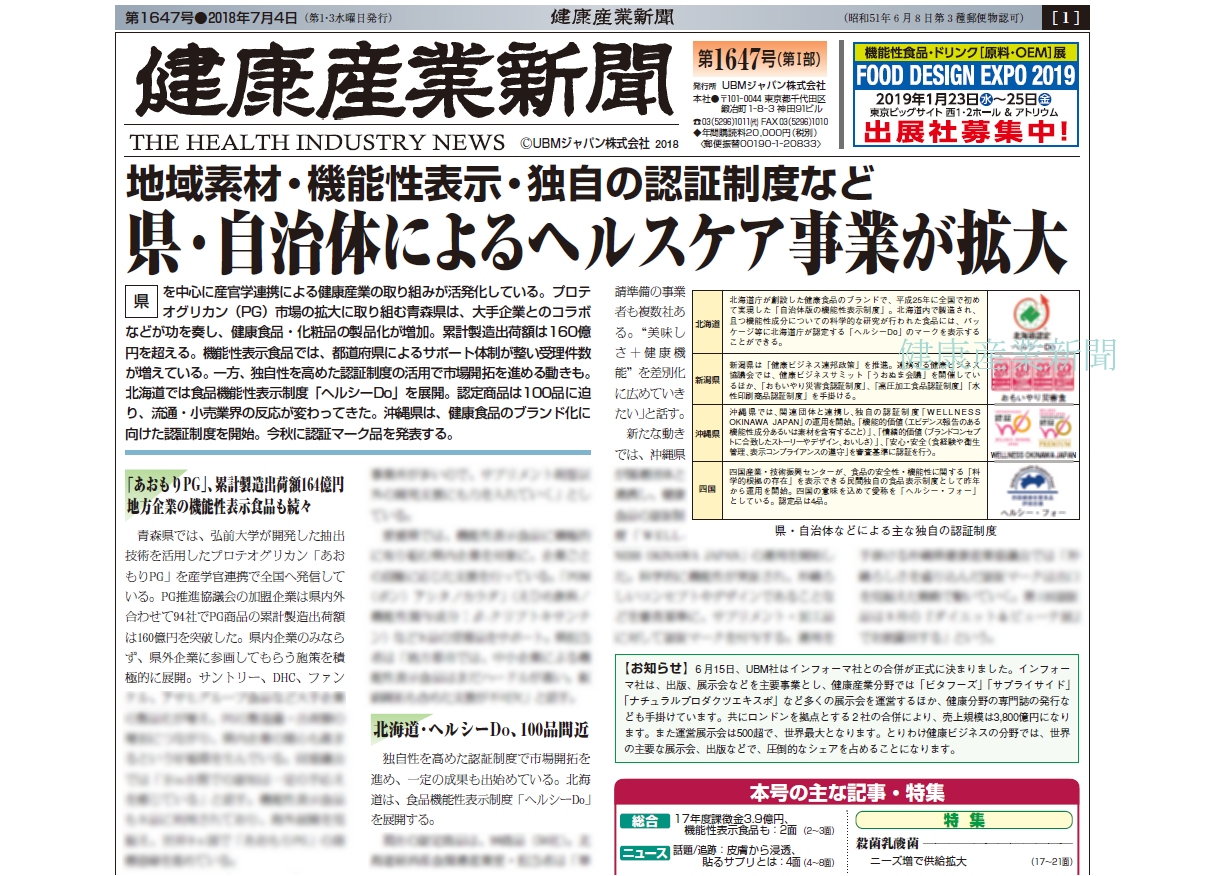 健康産業新聞(第1647号)主な記事・特集