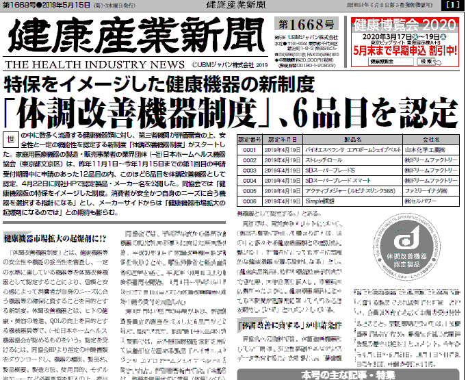 「健康産業新聞」(月2回発行/1号あたりの平均紙面数は約50頁)の購読・お問い合わせはこちら