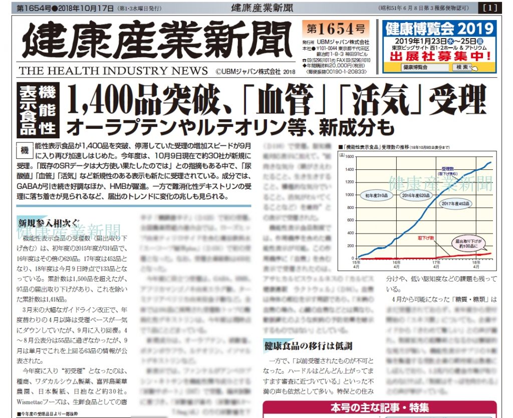 ・【機能性表示食品】1,400品突破、「血管」「活気」受理 -オーラプテンやルテオリン等、新成分も-