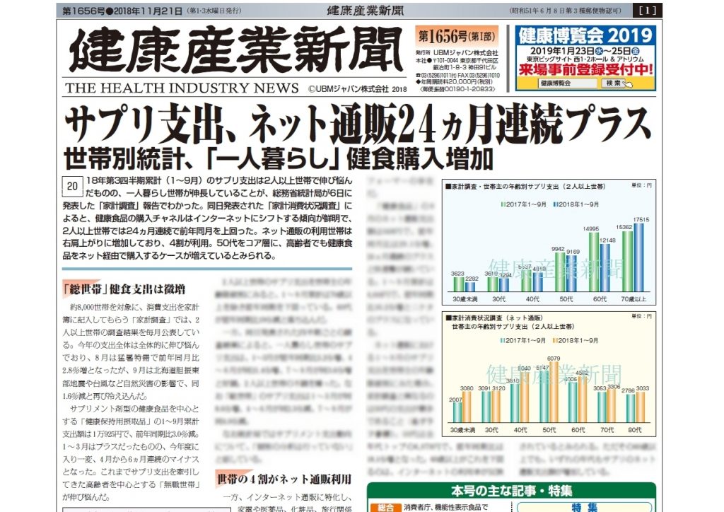 「健康産業新聞」(月2回発行/1号あたりの平均紙面数は約50頁)の購読・お問い合わせはこちら