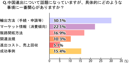 結果としては、輸出方法がトップで、消費傾向などのマーケット情報、販路開拓と成功事例などの具体的、実践的なテーマに関心が集中、多くの企業が具体的なビジネス展開を視野に情報を入手したい意向が明確になりました。