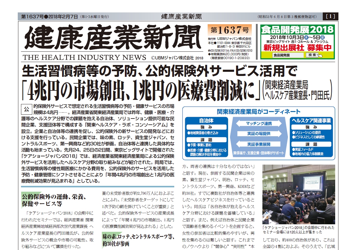 健康産業新聞(第1637号) 主な記事・特集