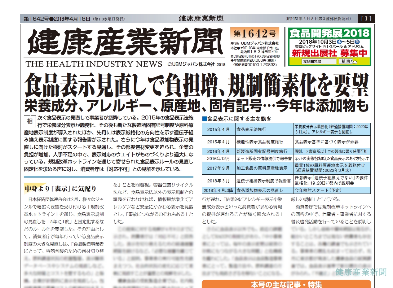 健康産業新聞(第1642号)主な記事・特集