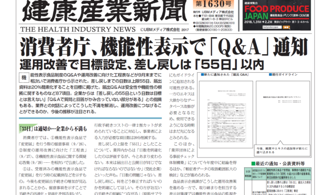健康産業新聞 2017年10月18日(1630号)が発行されました