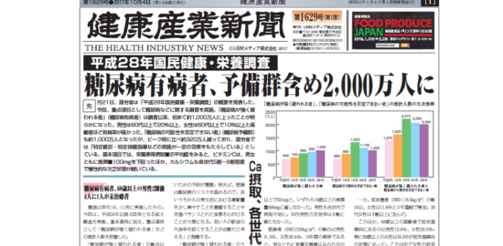 【健康産業新聞】2017年10月4日号(1629号)が発行されました