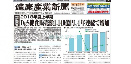 健康産業新聞(第1655号)主な記事・特集・【経済産業省】2018年度上半期 DgS健食販売…