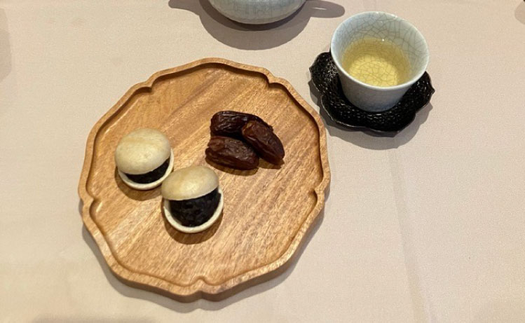 ペーストデーツを使用した発酵あんこの最中。デーツの甘さは洋菓子だけでなく和菓子とも相性が良い。