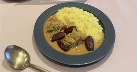 マジャール種より小ぶりなデグレット・ノア種を使用。熱に強く煮崩れしないため、カレーの具材の1つとして食感も楽しめる。スパイスの辛味とデーツの甘さが相性ぴったり。