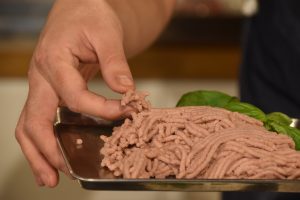 出来上がった料理が、食感が違うものであってはならないと考え、ハンバーグ、そぼろ、ミートボール、メンチカツ、餃子などで試作してみたが、普通の挽肉と変わらない出来上がりになったことを確かめている。