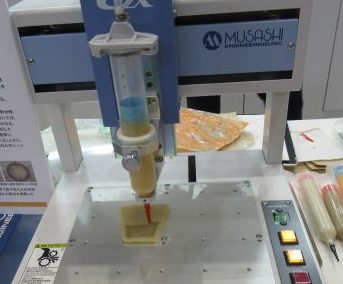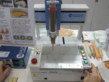 ●三菱商事ライフサイエンスと、十文字学園女子大学は共同で、3Dフードプリンターを使った食品をデモ展示。介護食用サケやプラントベースウナギができるんです!