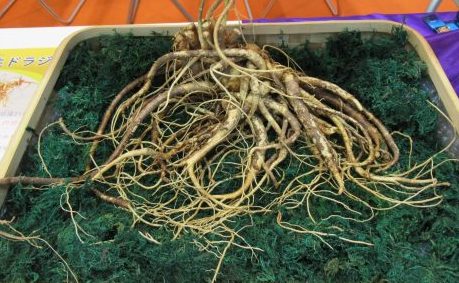 ●長生ドラジでは健康素材として知られている桔梗21年根という貴重な素材を展示していました。