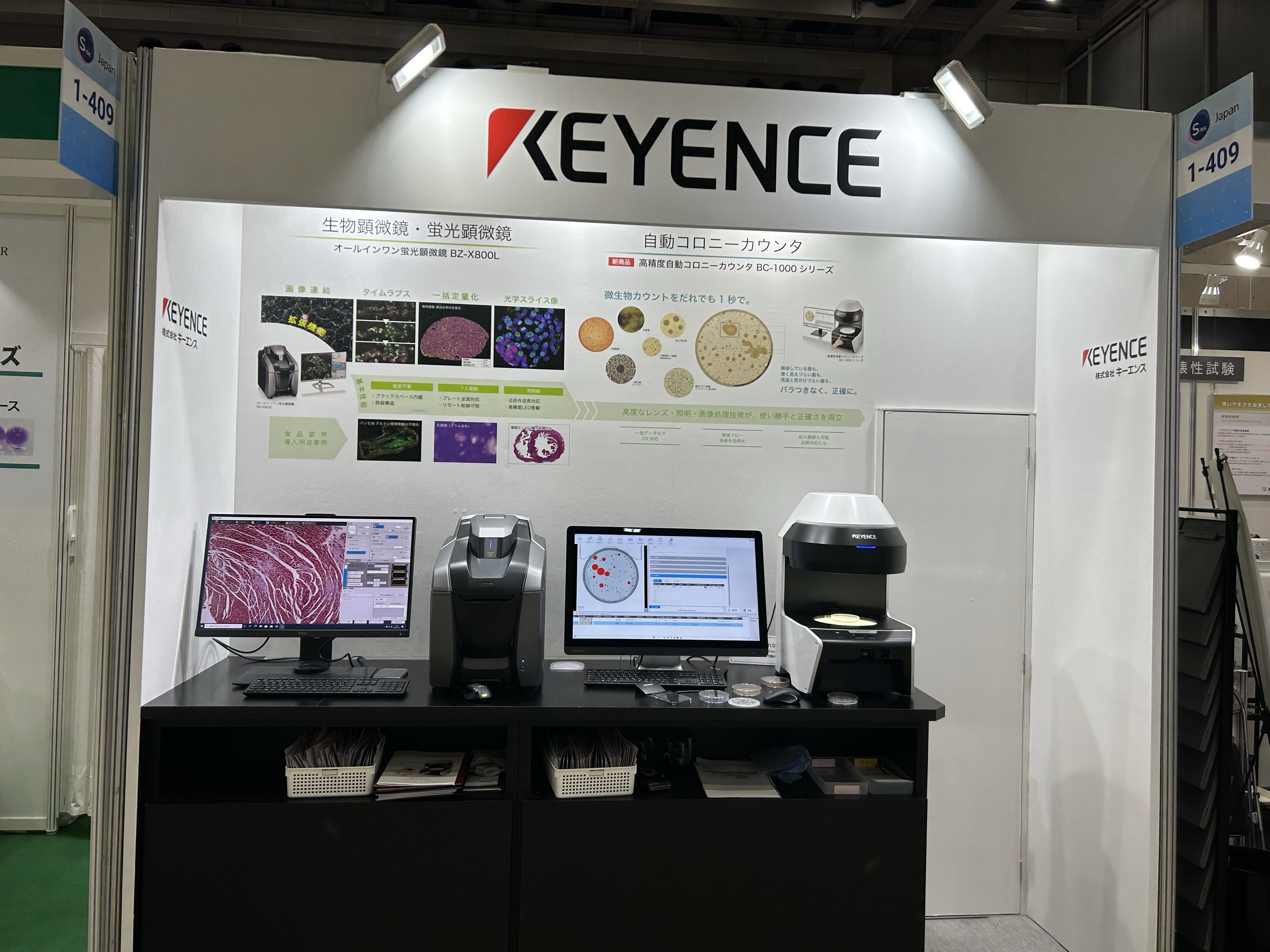 ●キーエンスでは微生物検査を正確に自動化する最新の自動コロニーカウンタ「BC-1000シリーズ」を紹介していました。BC-1000シリーズは、①菌数が多くても1秒で自動カウントが可能、②誰でも何度でも同じ結果が得られる、③瞬時に自動でデータ化が行えるため安定したデータ管理が可能など、微生物検査の正確な自動化を実現します。