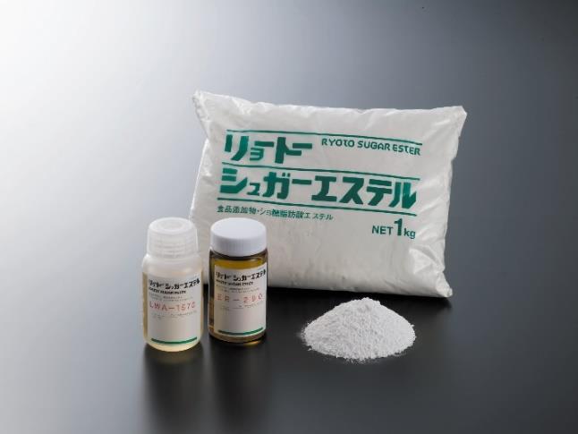 シュガーエステルは、ショ糖と植物油脂由来の脂肪酸を主原料とした乳化剤。水分と油分を均一に混合させる機能を有し、食品の加工や流通保管時の品質維持に役立ち、飲料(缶コーヒーなど)、乳製品(ホイップクリームなど)、菓子(ケーキやチョコレートなど)といった幅広い分野で使用されている。