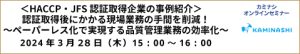 <HACCP・JFS認証取得企業の事例紹介> 認証取得後にかかる現場業務の手間を削減! 〜ペーパーレス化で実現する品質管理業務の効率化〜  オンラインセミナーのご案内
