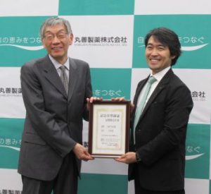 その後、(一社)日本記念日協会 代表理事 加瀬清志氏から、丸善製薬 代表取締役社長 日暮泰広氏に登録証が授与された。