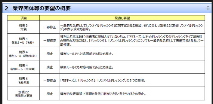▶要望を提出した業界団体:全国マヨネーズ・ドレッシング類協会
