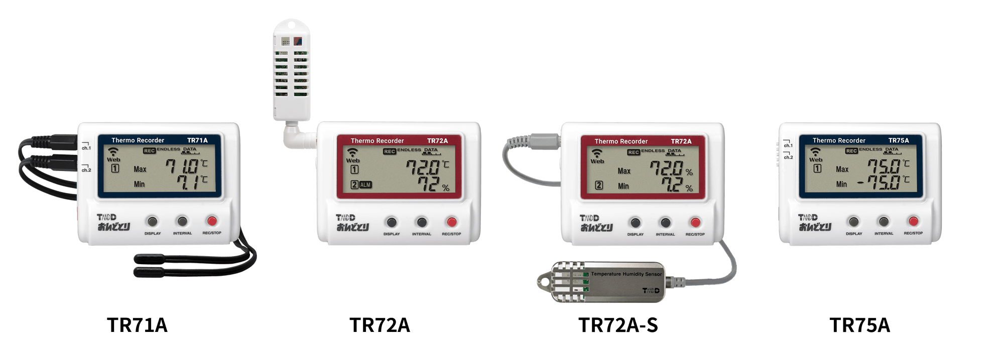 同シリーズは仕様の異なる4機種(TR71A、TR72A、TR72A-S、TR75A)をラインアップしており、測定温度帯や用途に応じた最適な機種選択が可能。アメリカ疾病予防管理センター(CDC)によって定められたワクチン管理に関する指令に準拠した温度管理を実現する『VFC モード』も搭載している(TR71A, TR75Aのみ)。