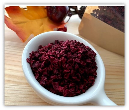 原料は、赤ビーツを粉砕したパウダー品とダイスカット状のチップ(5mm)の2種類を販売する。パウダーをもとにした打錠品のバルク供給も行う。今後は10mmという大きめのチップや、ペースト品の販売も企画している。