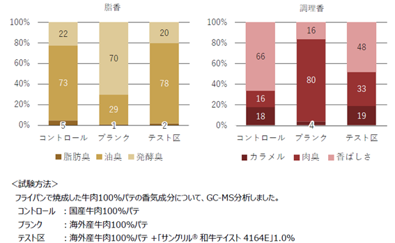 サングリル®和牛テイスト4164Eを海外産パテに使用した際の香気成分比較