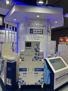 カンファミキシノーヴァは生成能力600〜4,200L/Hの大容量タイプ「GH型」、300〜 2,400L/Hの標準タイプ「AP-T/AP-I型」、180〜600L/Hの小規模タイプ「ES-B/ES-C型」を取り揃えており、濃度・pH調整(補正)機能搭載は当然のこと、HACCPにおいて重要視されている「管理・記録」にも応じる機能もユーザーに合わせてカスタマイズが可能となっている。