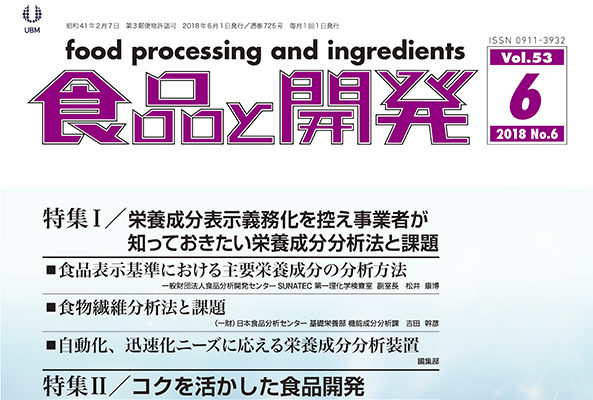 【2018年6月号・特集】栄養成分表示義務化を控え事業者が知っておきたい栄養成分分析法と課題