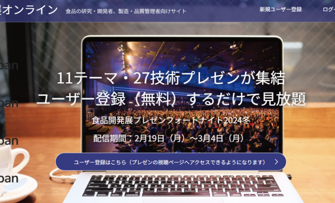 各社の素材・技術の各種プレゼンを配信する「食品開発展プレゼンフォートナイト」が、2月19日から配信開始となります。それに先立ちまして、本日よりプレゼンタイトルが公開になりました。ユーザー登録するだけで、無料でいくつもご覧いただけま…