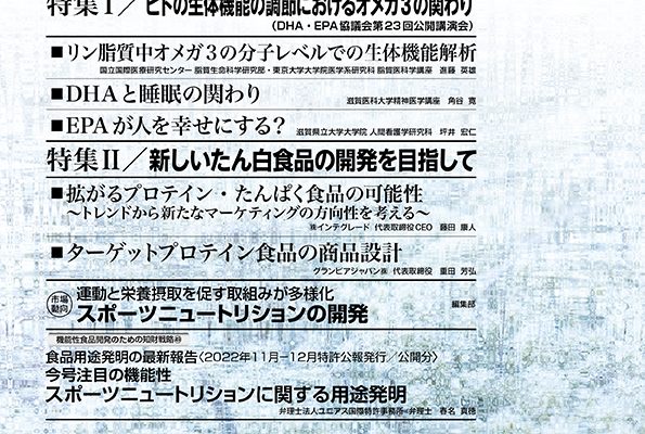 【2023年2月号】特集/ヒトの生体機能の調節におけるオメガ3の関わり(DHA・EPA協議会第23回公開講演会)/新しいたん白食品の開発を目指して