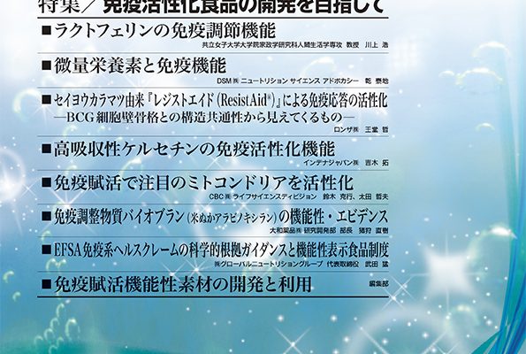 特集/免疫活性化食品の開発を目指して■ラクトフェリンの免疫調節機能共立女子大学大学院家政学研究科人間生活学専攻 教授 川上 浩■微量栄養素と免疫機能DSM(株)ニュートリション サイエンス アドボカシー 乾 泰地■セイヨ…