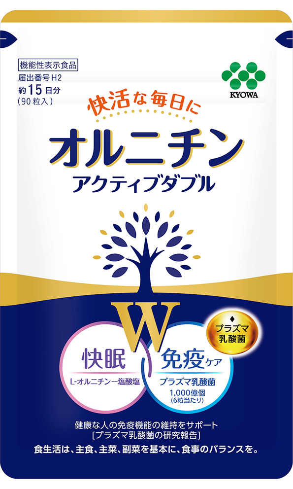 睡眠と免疫の悩みに応えるために開発したサプリメント。独自の機能性関与成分を採用し、1袋当たりシジミ1,800個分のオルニチンと1,000億個のプラズマ乳酸菌を配合している。