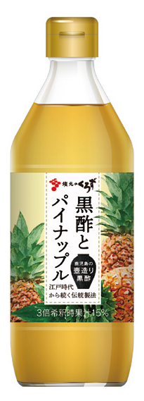 鹿児島県福山町で江戸時代から続く、壺を用いた伝統製法で1 年以上熟成・発酵させた黒酢に、甘酸っぱいパイナップル果汁15%(3 倍希釈時)を加えて製造したビネガードリンク。水割りだけでなく、炭酸や牛乳で割って美味しく飲める味付けにこだわった。