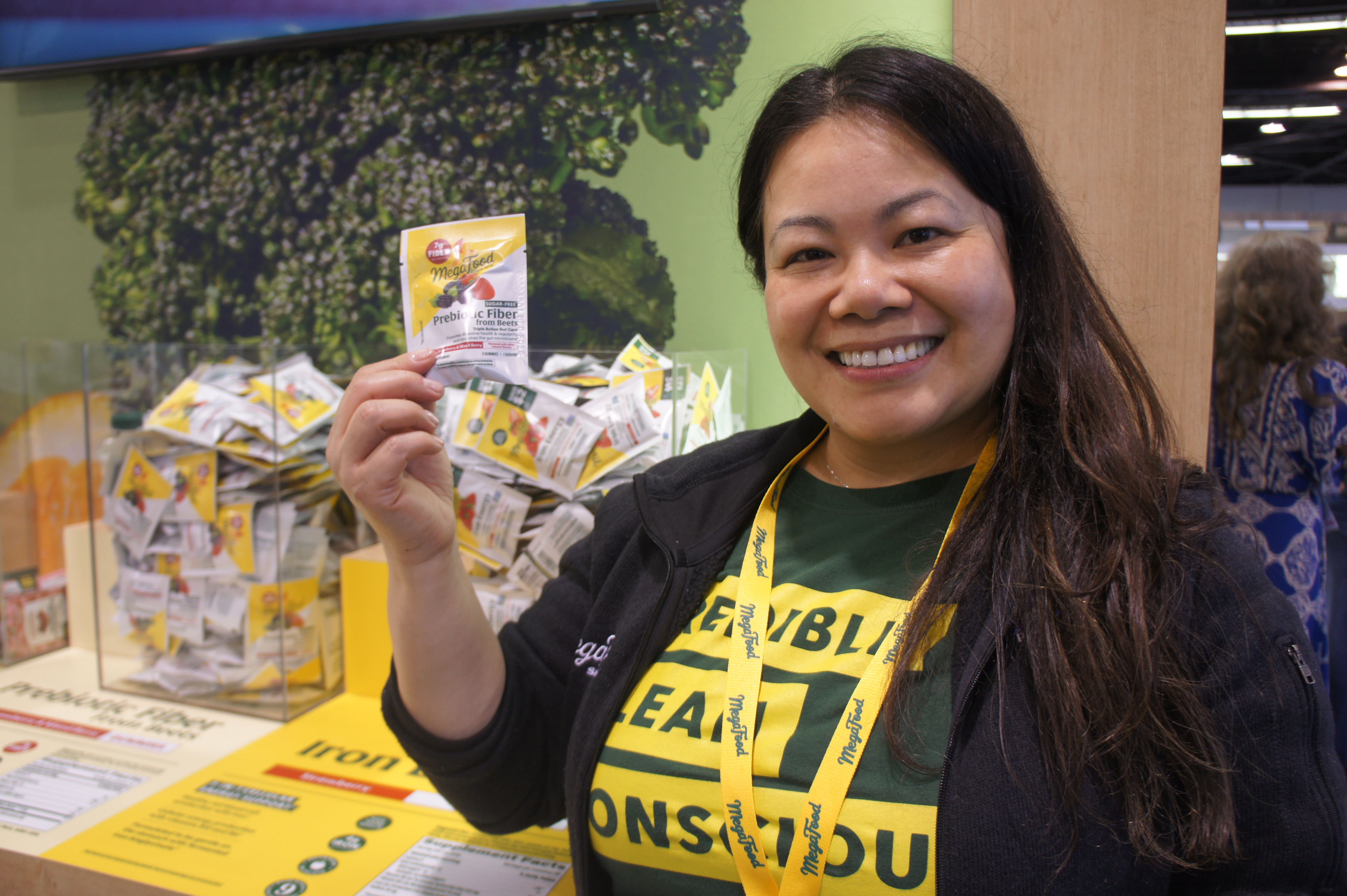 インフォーママーケッツ副社長でマーケットリーダーのJon Benninger氏は今年の展示会トレンドとして「Protein Everywhere」「Fiver,Probiotics and Digestion」「International Flavor」「Snacking Smart」「Nutrients Density」「Commitment to Good」の6つのテーマを挙げた。会場の多くのブースでみられたプロテインについては、プラントベースプロテインをはじめ多様な商品展開が行われており、プレバイオティクスとプロバイオティクスを組み合わせたシンバイオティクスでは、腸の健康や消化を助けるといった機能性が人気だと解説した。展示会は7日(現地時間)まで。4日間でトータル7万人超の来場者を見込む。