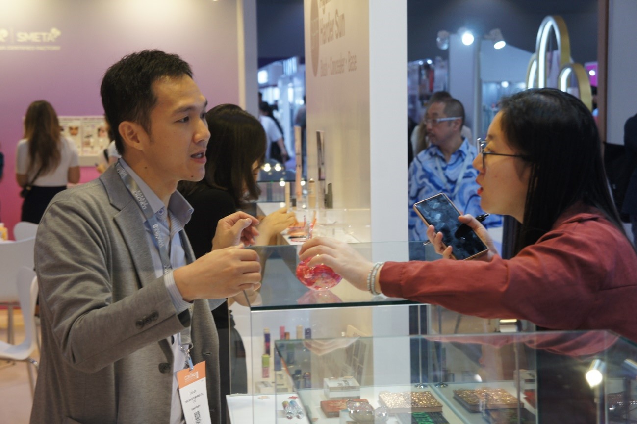東洋ビューティも連続出展の1社。ブースではスキンケア製品への関心が強いと話すのは同社海外営業統括部の呉泰煥氏。「なかでもナチュラル志向が強い印象。欧州はミニマムな処方をニーズしている」と分析した。コスモパックへの出展は「東南アジアでの展開をさらに広げていきたい」としている。