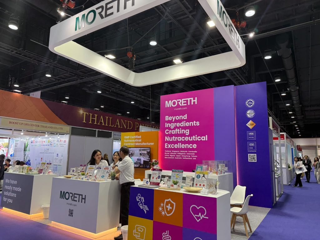 Morethはプロバイオティクス製品を展示。子供向け製品も揃えている。
