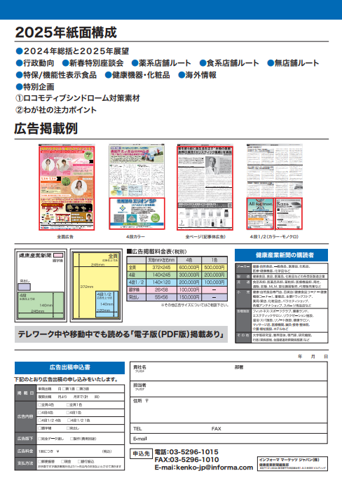 健康産業新聞では、2025年の健康食品市場動向を総括し、今後を展望する「健康産業新聞 新年特別号」を2026年1月7日に発行します。激変する健康産業を取り巻く環境を編集部が徹底取材。2025年の市場規模を発表するとともに、各チャネルの状況をまとめ、今後を展望します。