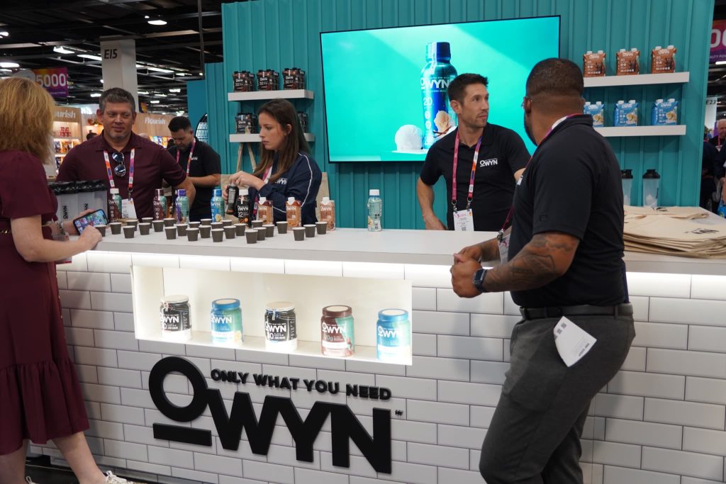 植物由来のプロテイン100%の製品を販売するOWYN社は、プロテインシェイク、パウダーを展示。