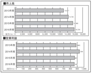 最新の17年度第 2 四半期の数字を過去 2年分と比較してみた場合、売上高は 1 %程度の微増にとどまる一方で、営業利益は15年度から16年度にかけて 5 %減、17年度にかけては29%減と、減少傾向を加速させている。