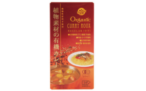 有機原材料100%の固形カレールウ(中辛タイプ)。13種類の有機スパイスをオリジナルブレンドし有機パーム油を配合して固形化した。化学調味料や保存料など一切使用していないほか、一般的に使われる牛脂やラードなど動物性原料は不使用、植物素材のみで仕上げた。