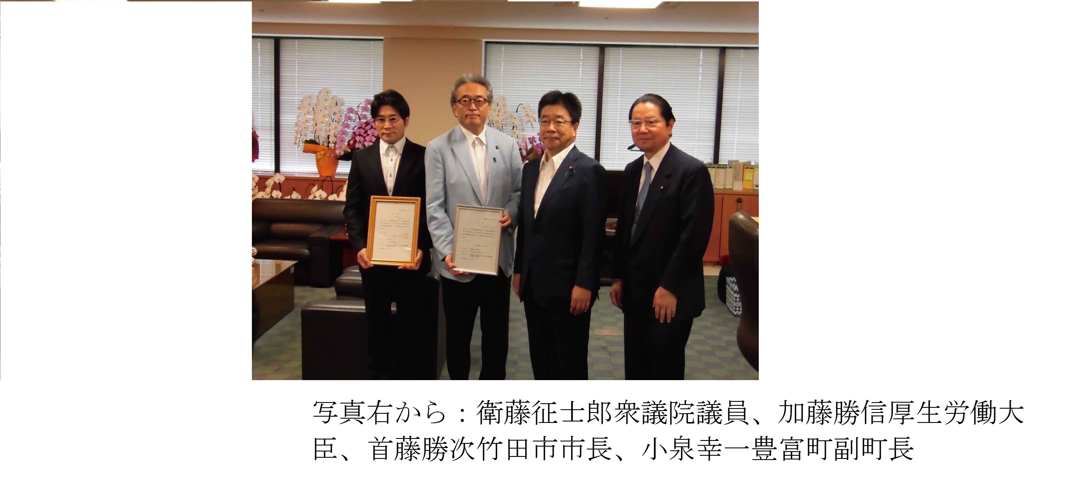 厚生労働省は、国民の健康づくりを推進する「健康増進施設認定規程」を策定しており、運動型健康増進施設、温泉利用型健康増進施設、温泉利用プログラム型健康増進施設の3類型の施設に、大臣認定を行っている。温泉利用型は、健康増進のための温泉利用及び運動を安全かつ適切に行える施設(全国20施設)で、利用者が一定の要件を満たして療養に活用することで、往復交通費や利用料などについて所得税の医療費控除を受けられる。しかしながら、地域住民の健康づくりとして活発な活用とは至らなかった。同一建物内に温浴施設と運動施設が一体的に整備されていることという認定条件も認定施設増加へのネックポイントとなっていた。そこで、竹田市や豊富町など7自治体と、NPO法人健康と温泉フォーラム(会長三友紀男)は、温泉地に近距離に存在する温浴と運動施設を連携させる健康増進施設認可への道を模索し、2015年6月に当時の厚生労働大臣に要望した。その後、16年度から認定要件が緩和され、ついに第1期として7月4日に北海道豊富町が、続いて7月29日に大分県竹田市が認可されるに至った。