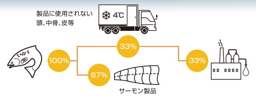同社はヨコレイの100%子会社で、昨年、ノルウェーのオーレスンに本社を置くホフセス・バイオケア社に出資。現地では、欧米市場向けにサーモンの切り身加工を行う工場から出た頭部分などを、そのまま新鮮な状態で加水分解工場に保冷輸送(4℃)し、プロテインやオイル、カルシウムの素材に加工する。