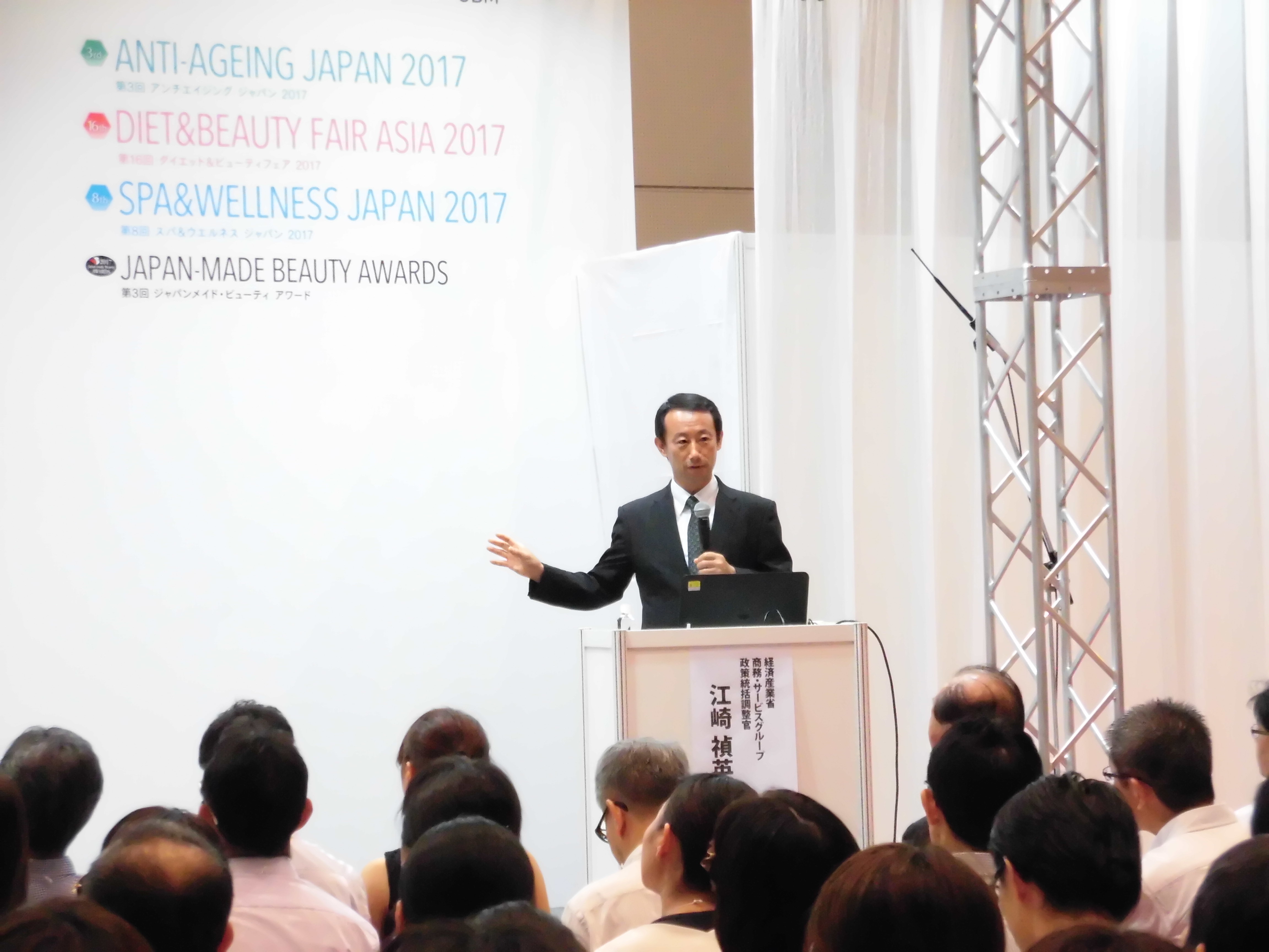 テーマは「生涯現役社会に輝く美と健康サービス」。第1部の基調講演では、経済産業省商務・サービスグループ政策統括調整官 江崎禎英氏が登壇、国の取り組みと次代のヘルスケア産業の展望を熱く語った。続く、津田塾大学総合政策学部教授森田朗氏(前 国立社会保障・人口問題研究所所長)は、喫緊の課題である「人口減少問題」について解説。興味深い内容となった。第2部のパネルディスカッションでは「行動変容とその継続」がテーマ、東大病院小児科医の伊藤明子氏ほか、奈良県立医科大産学官連携推進センター教授の梅田智広氏、㈱ウィット(あすけん事業統括責任者)の道江美貴子氏がパネラーとして参加。コーチチングや、からだデータの活用への期待について話した。