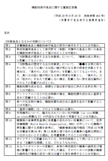 消費者庁は9月29日、機能性表示食品に関する質疑応答集をホームページで公表した。