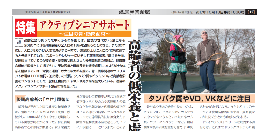 ウェブでは一部を公開。記事は「健康産業新聞 1630号」に掲載しています。「健康産業新聞」(月2回発行/1号あたりの平均紙面数は約50頁)定期購読のお申し込みはこちら