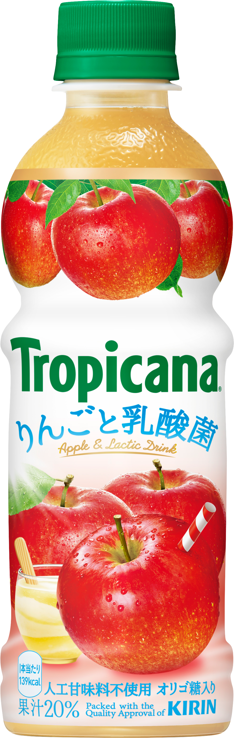 果実と乳酸菌の組み合わせテーマにしたトロピカーナシリーズ品。今年5 月に発売した『トロピカーナ桃と乳酸菌』に次ぐ第2 弾となる。甘熟りんごの濃密な甘さと乳酸菌のさわやかな酸味が楽しめる乳酸菌テイストの果汁飲料。人工甘味料を使用せず、果汁と相性の良いオリゴ糖で仕上げた。