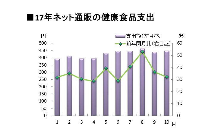総務省統計局が8日に発表した「家計消費状況調査」で、インターネット通販による健康食品の支出額が今年に入ってから10ヵ月連続の2ケタ増となったことがわかった。