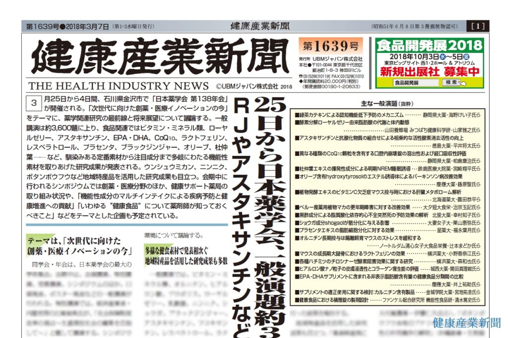 本記事は「健康産業新聞 1639号」に掲載しています。「健康産業新聞」(月2回発行/1号あたりの平均紙面数は約50ページ)定期購読のお申し込みはこちら