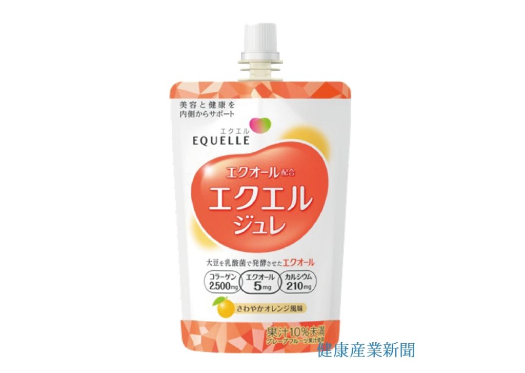 2014年から展開しているタブレットタイプのサプリメント「エクエル」に、新たにジュレバージョン『エクエルジュレ』が登場。骨密度が高いほど肌の弾力があるというエビデンスに着目し、エクオール5mgのほか、コラーゲン2500mg、カルシウム210mgを配合した。