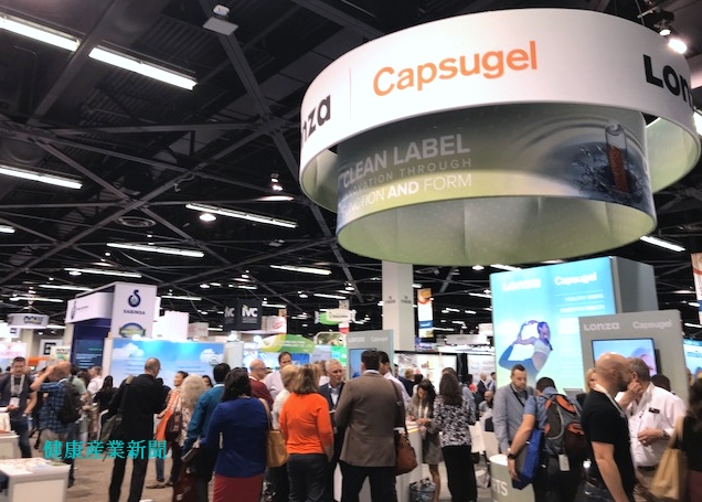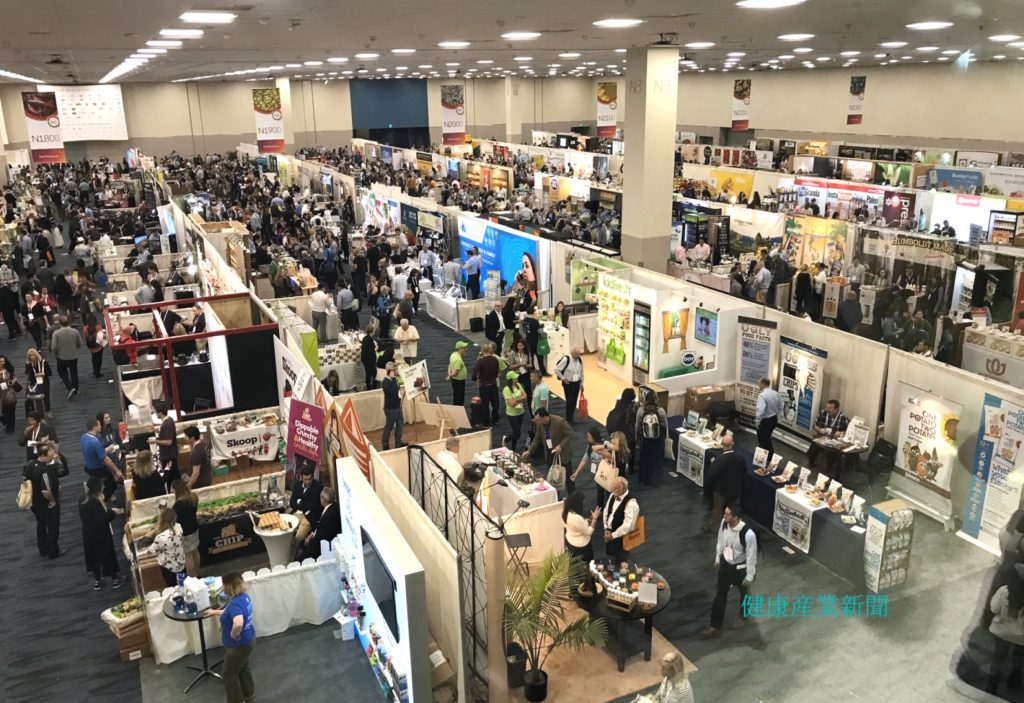 展示会は「サプリメント」「食品素材」「ライフスタイル」「有機」「ナチュラル・スペシャリティーフーズ」に加え、新顔向けの「ホットプロダクツ」のゾーンがある。サプリメントからオーガニックフーズ、化粧品、雑貨、水、スナックなどの商品が展示された。日本からも富士カプセルなどカプセル数社に加え、協和、太陽化学、カネカ、富士化学などの現地法人や日本企業がブースを構えた。最終商品でも、森永、カルビー、伊藤園、井村屋などが、それぞれ主力商品を紹介し、注目を集めた。各社は、アロエヨーグルトやスナック、ペットボトルの緑茶、和菓子などで、いずれも健康志向食品の訴求という感じ。この他にも、チョコレートや各種のスナック、オーガニックフーズや飲料、肉製品、チーズ、また、南米やインド、韓国などの料理、健康機器なども並び、ほぼあらゆる商品が並んだ。