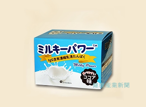 ニュージーランドの放牧牛生乳から特殊製法によって作られた濃縮乳清タンパクを使用。免疫グロブリン(IgG、s-lgA)やラクトフェリンを配合しているのも特徴。免疫グロブリンやラクトフェリンは腸内環境を整え、腸管免疫を適切に活性化させる効果が期待できる。子供やお年寄りが食べやすいように、ココア風味でチュアブルタイプに仕上げた。