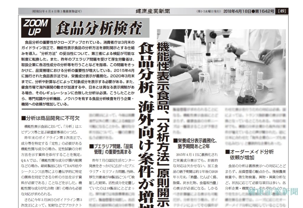ウェブでは一部を公開。記事は「健康産業新聞 1642号」に掲載しています。「健康産業新聞」(月2回発行/1号あたりの平均紙面数は約50頁)定期購読のお申し込みはこちら